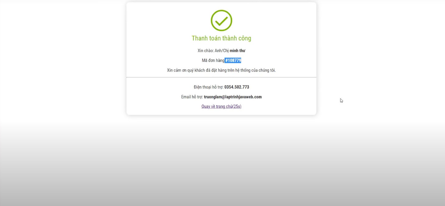 Sau khi chuyển khoản xong, quý khách gửi xác nhận qua zalo or facebook nhé để laptrinhjavaweb xác nhận và chuyển hàng cho quý khách